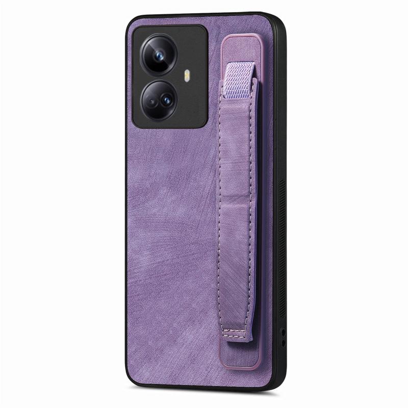 For Realme 10 Pro+ Retro Wristband Holder Leather Back Phone Case(Purple)