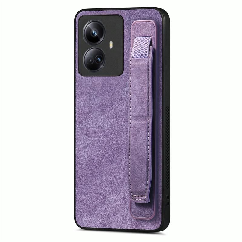 For Realme 10 Pro Retro Wristband Holder Leather Back Phone Case(Purple)