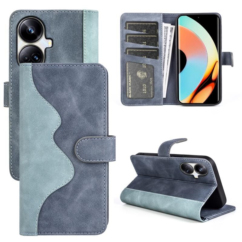 Για Realme 10 Pro + ραφή οριζόντια Flip δερμάτινη θήκη τηλεφώνου (μπλε)