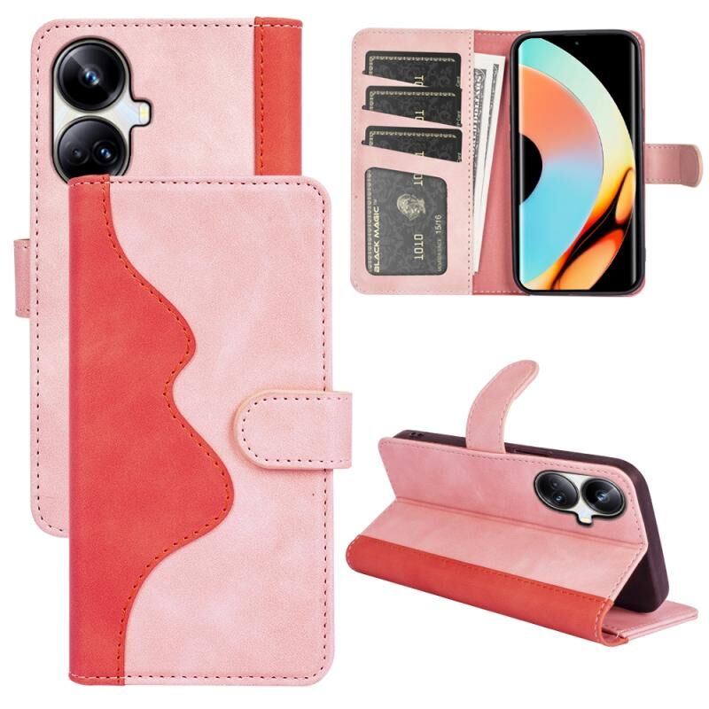 Για Realme 10 Pro + ραφή οριζόντια Flip δερμάτινη θήκη τηλεφώνου (ροζ κόκκινο)