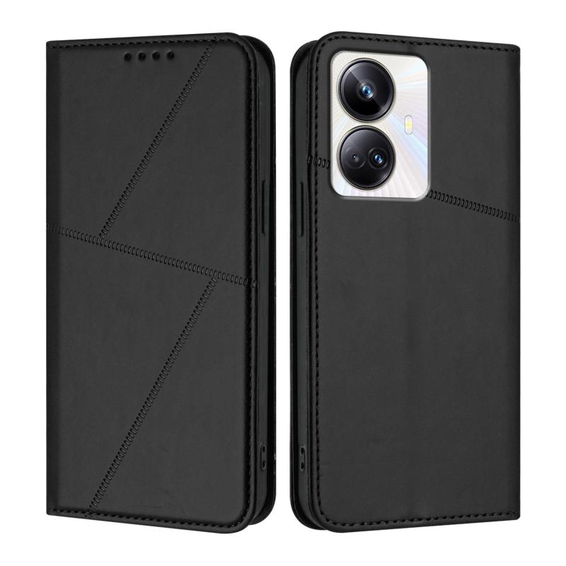 For Realme 10 Pro+ Strong Magnetic Frosted Flip Leather Phone Case(Black)