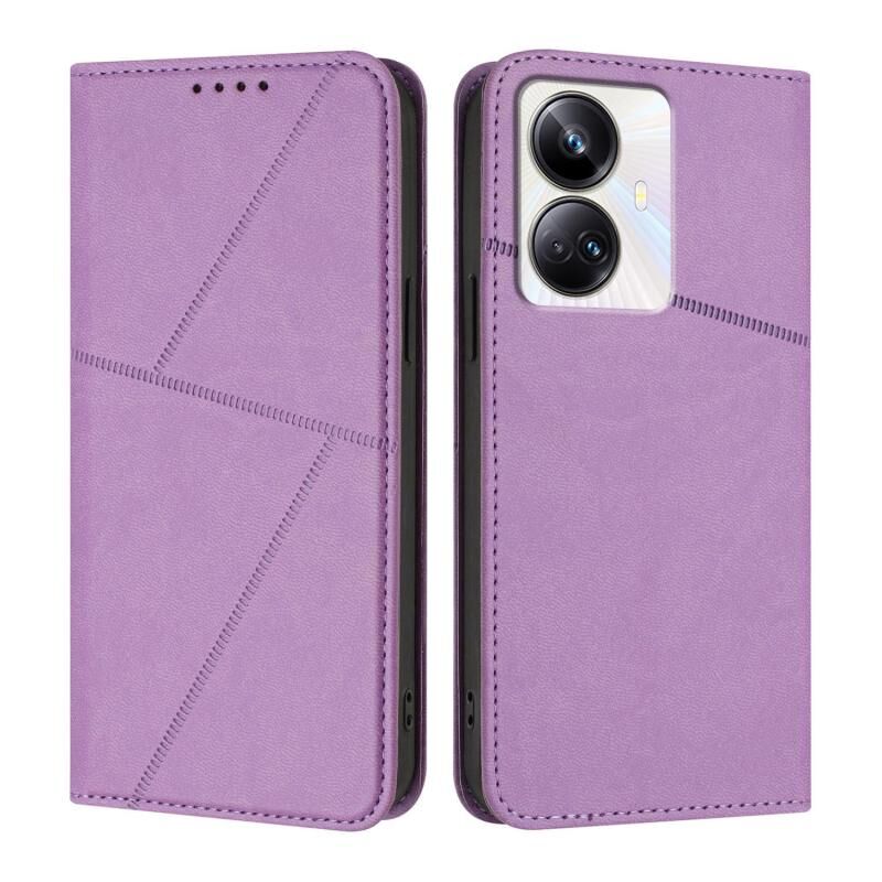 For Realme 10 Pro+ Strong Magnetic Frosted Flip Leather Phone Case(Light Purple)