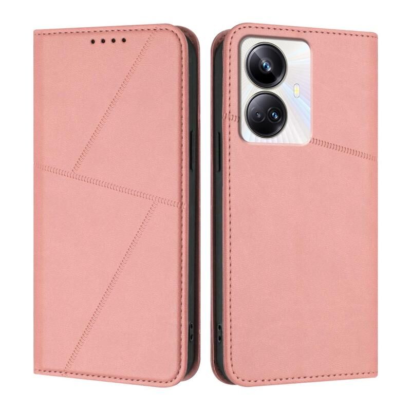 For Realme 10 Pro+ Strong Magnetic Frosted Flip Leather Phone Case(Pink)