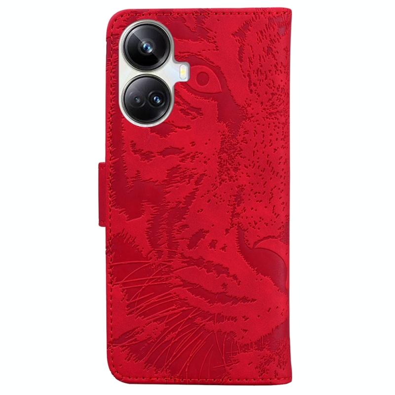 Θήκη τηλεφώνου δερμάτινη με ανάγλυφο μοτίβο τίγρης για Realme 10 Pro+ (Ροζ)