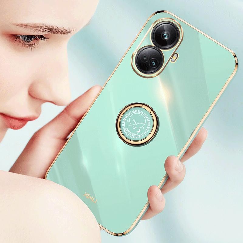 Θήκη τηλεφώνου Realme 10 Pro+ XINLI με ευθείες άκρες, 6D επιμετάλλωση TPU με δακτύλιο στήριξης (Μέντα Πράσινο)