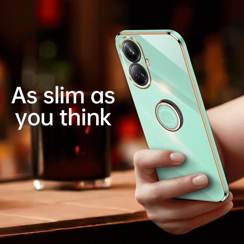 Θήκη τηλεφώνου Realme 10 Pro+ XINLI με ευθείες άκρες, 6D επιμετάλλωση TPU με δακτύλιο στήριξης (Μέντα Πράσινο)