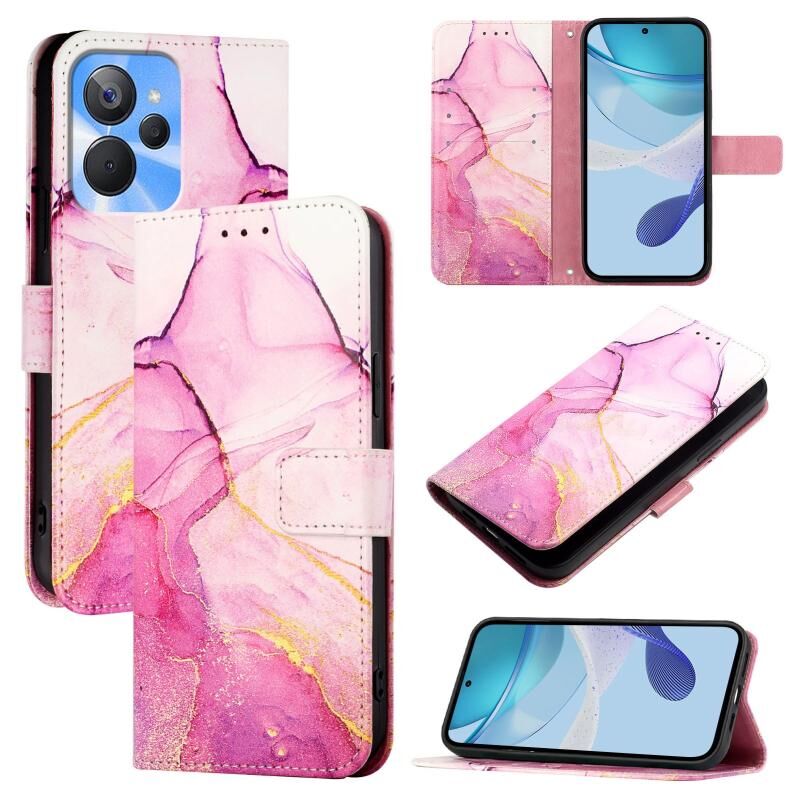 For Realme 10T / 10s / Realme 9i 5G India PT003 Marble Pattern Flip Leather Phone Case(Pink Purple Gold)