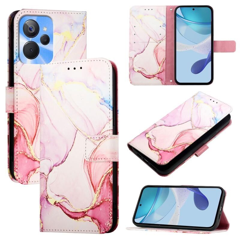 For Realme 10T / 10s / Realme 9i 5G India PT003 Marble Pattern Flip Leather Phone Case(Rose Gold)
