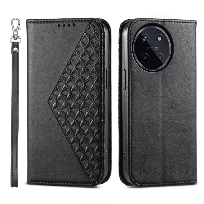 Θήκη τηλεφώνου από μαγνητικό δέρμα με υφή μοσχαριού Cubic Grid για Realme 11 4G (Μαύρο)