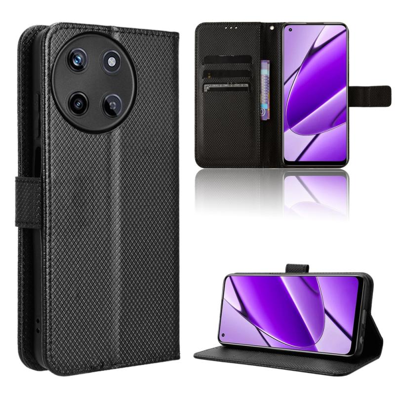 For Realme 11 4G Foreign Diamond Texture Leather Phone Case(Black)