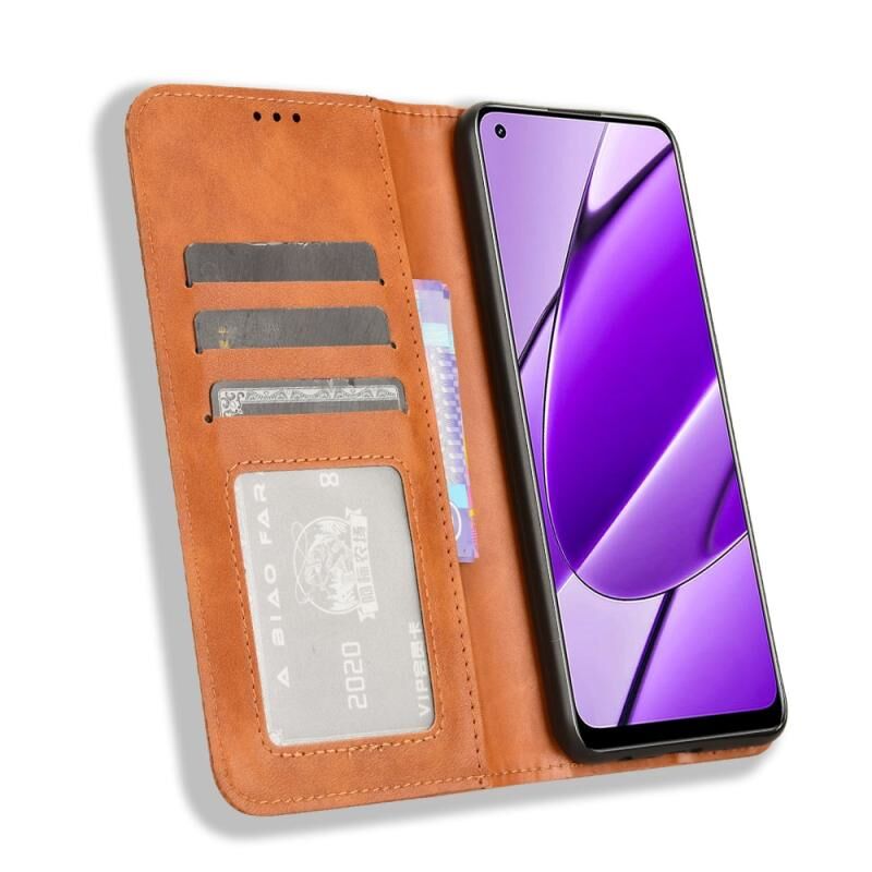 For Realme 11 4G Foreign Magnetic Buckle Retro Texture Leather Phone Case(Brown)