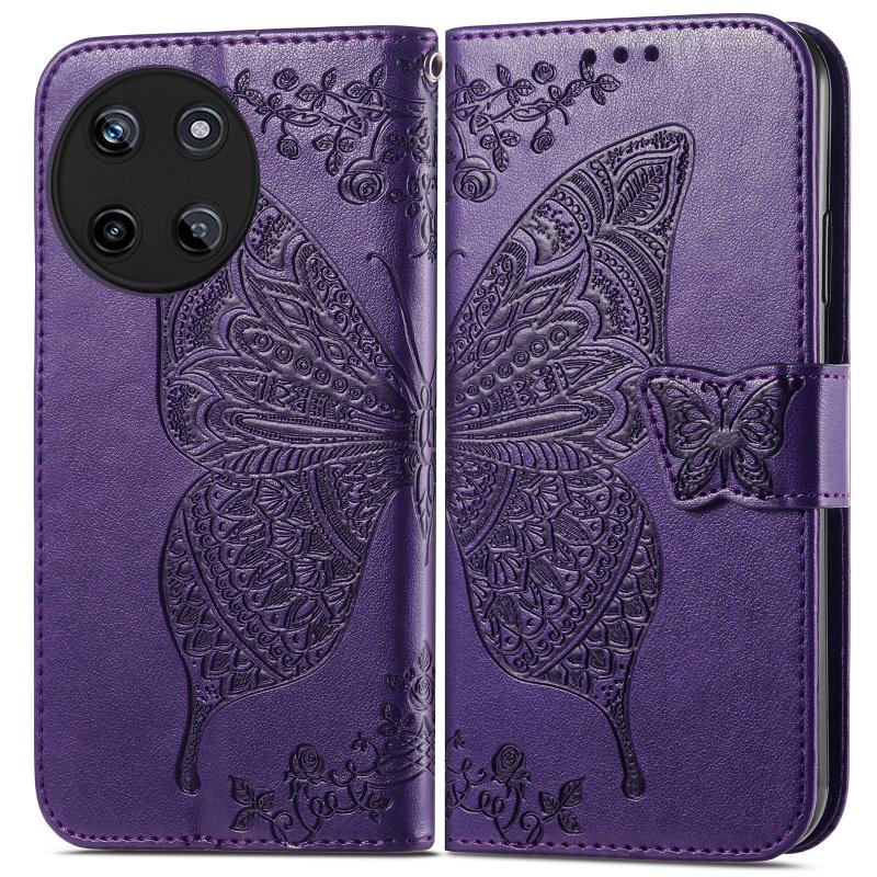 For Realme 11 4G Global Butterfly Love Flower Embossed Leather Phone Case(Dark Purple)