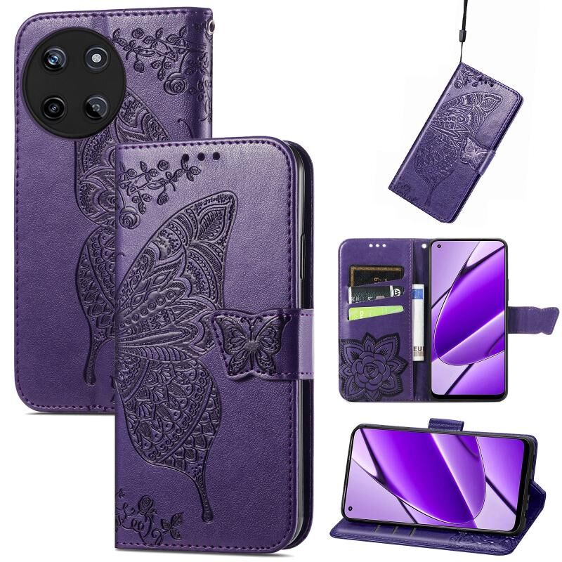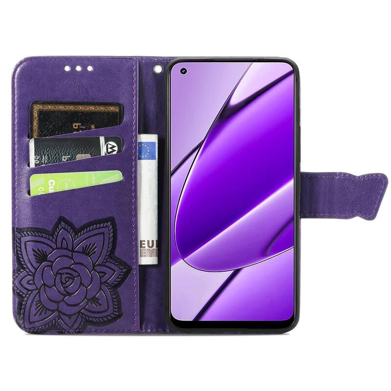 Θήκη τηλεφώνου από δέρμα με ανάγλυφο σχέδιο πεταλούδας και λουλουδιών για Realme 11 4G Global (Μπλε)