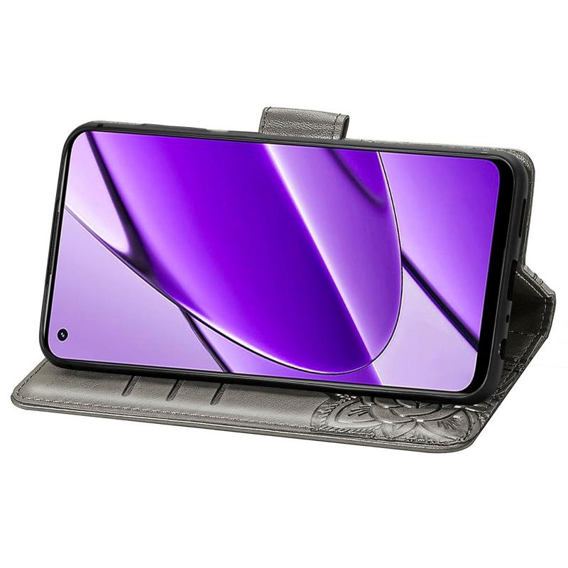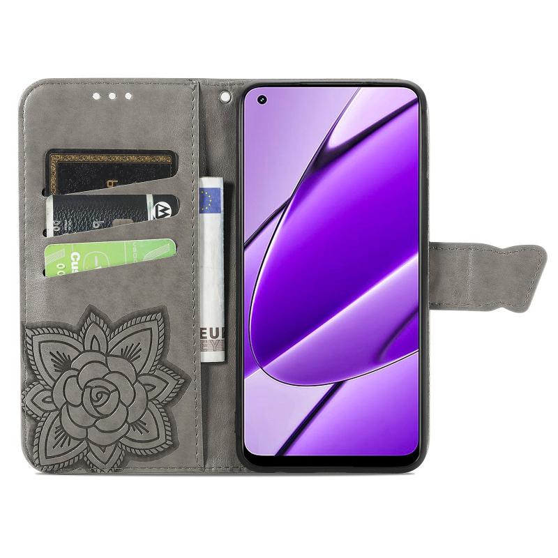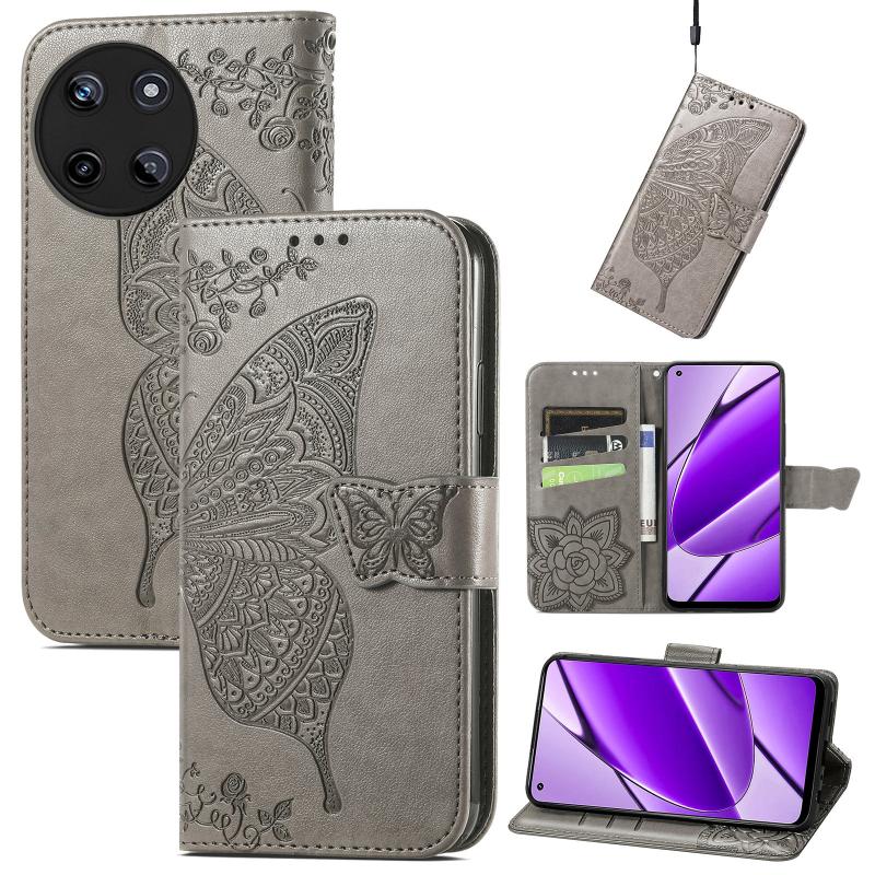 For Realme 11 4G Global Butterfly Love Flower Embossed Leather Phone Case(Gray)