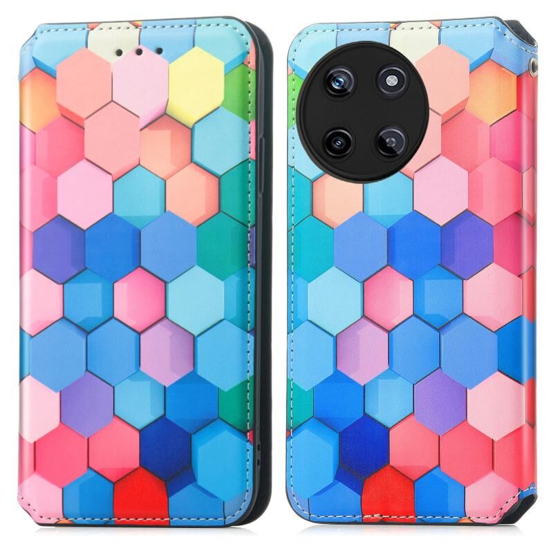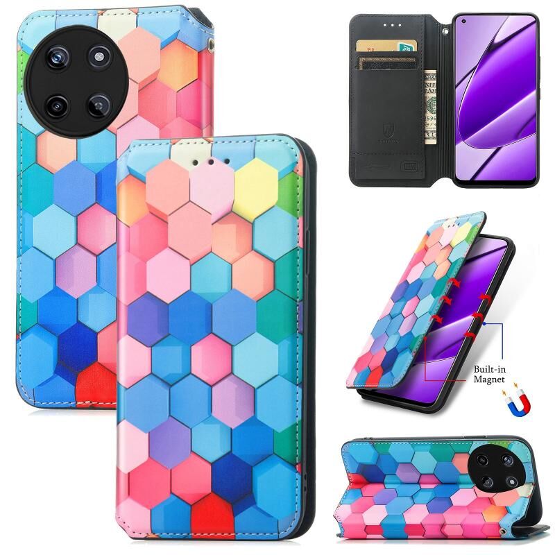 Θήκη για Realme 11 4G Global CaseNeo Μαγνητική Δερμάτινη Θήκη Τηλεφώνου με Πολύχρωμα Τετράγωνα