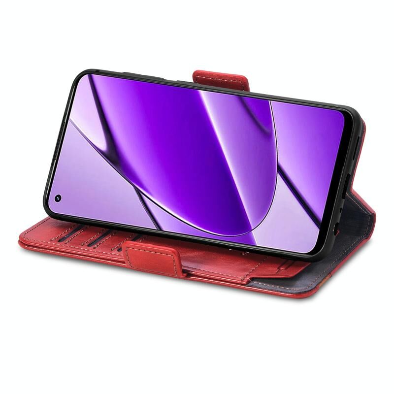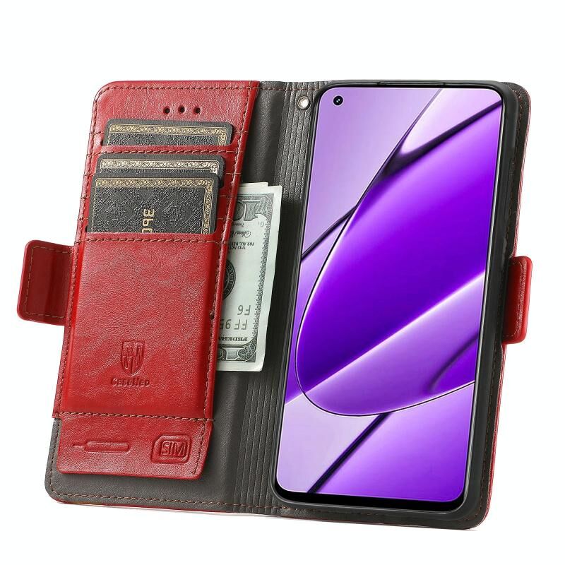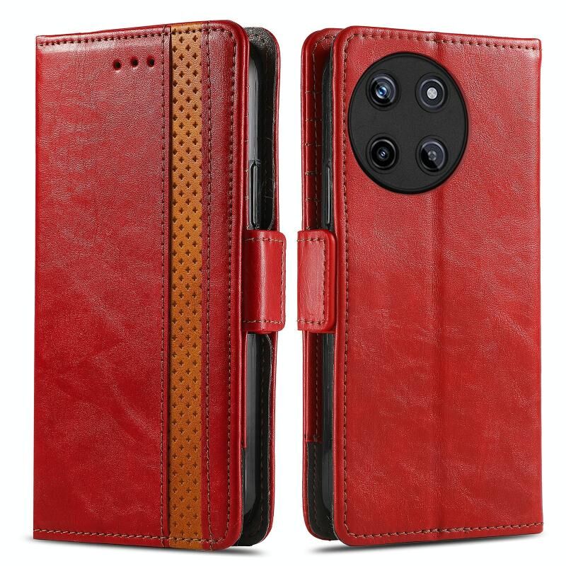 Για Realme 11 4G Global CaseNeo Splicing Διπλή μαγνητική πόρπη δερμάτινη θήκη τηλεφώνου (κόκκινο)