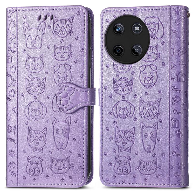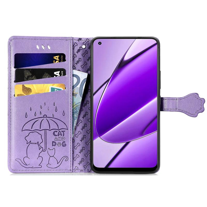 For Realme 11 4G Global Cat and Dog Embossed Leather Phone Case(Purple)