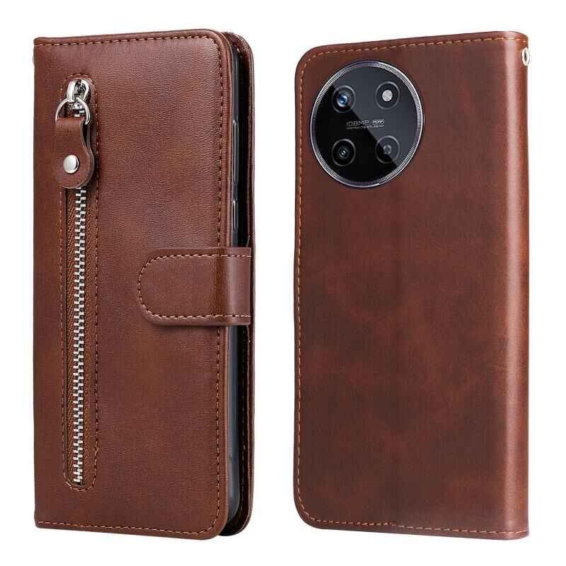 For Realme 11 4G Global Fashion Calf Texture Zipper Leather Phone Case(Brown)