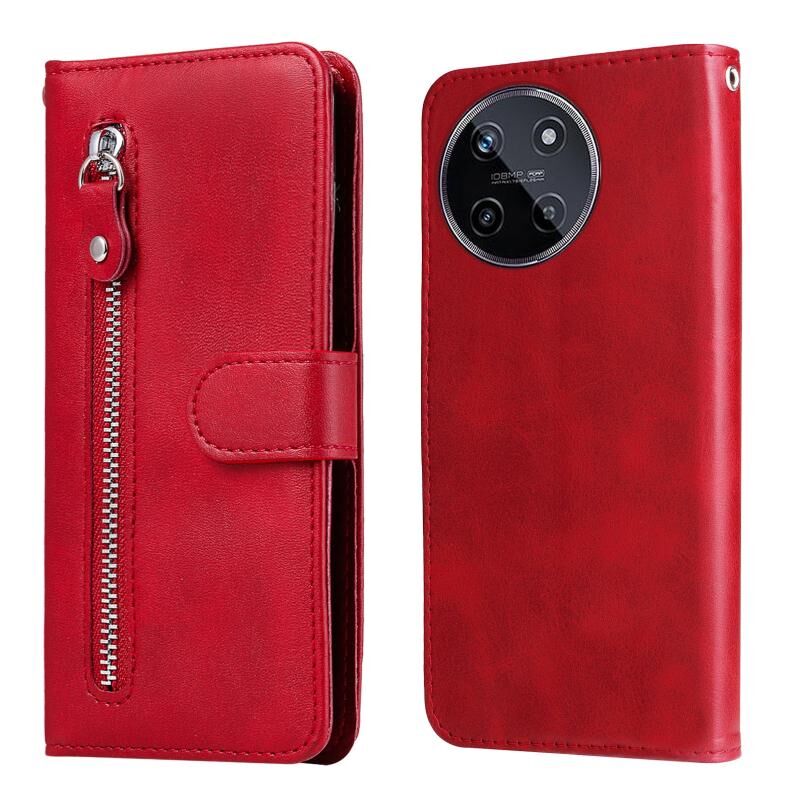For Realme 11 4G Global Fashion Calf Texture Zipper Leather Phone Case(Red)