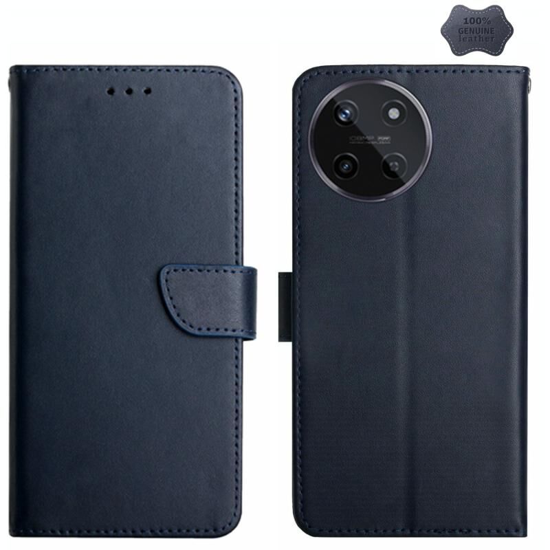 Θήκη τηλεφώνου τύπου flip από γνήσιο δέρμα, ανθεκτική στα δακτυλικά αποτυπώματα για Realme 11 4G Global (Μπλε)