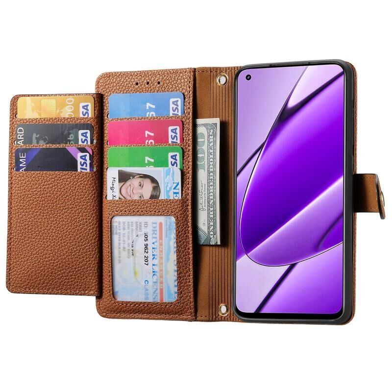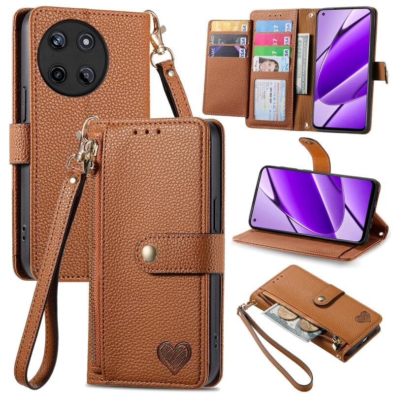 Για Realme 11 4G Παγκόσμια αγάπη φερμουάρ φερμουάρ δερμάτινη θήκη τηλεφώνου (καφέ)