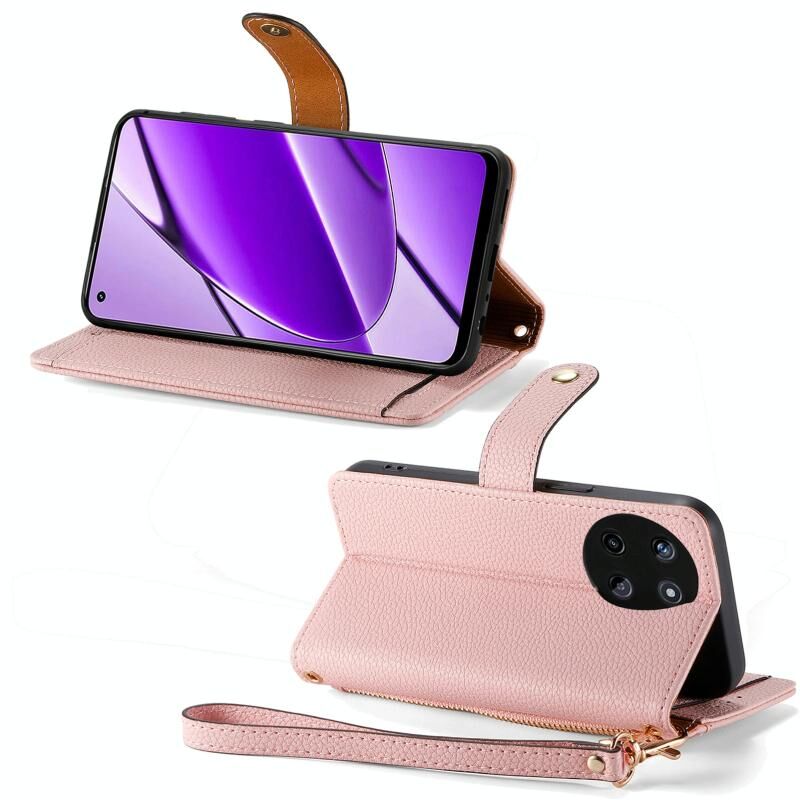 Για Realme 11 4G Παγκόσμια αγάπη φερμουάρ φερμουάρ δερμάτινη θήκη τηλεφώνου (ροζ)