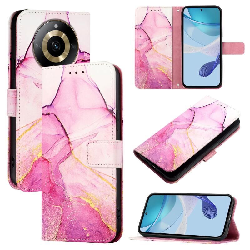 For Realme 11 4G Global PT003 Marble Pattern Flip Leather Phone Case(Pink Purple Gold)