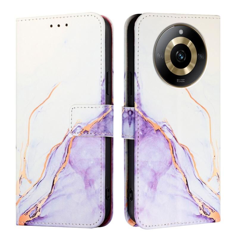 For Realme 11 4G Global PT003 Marble Pattern Flip Leather Phone Case(White Purple)