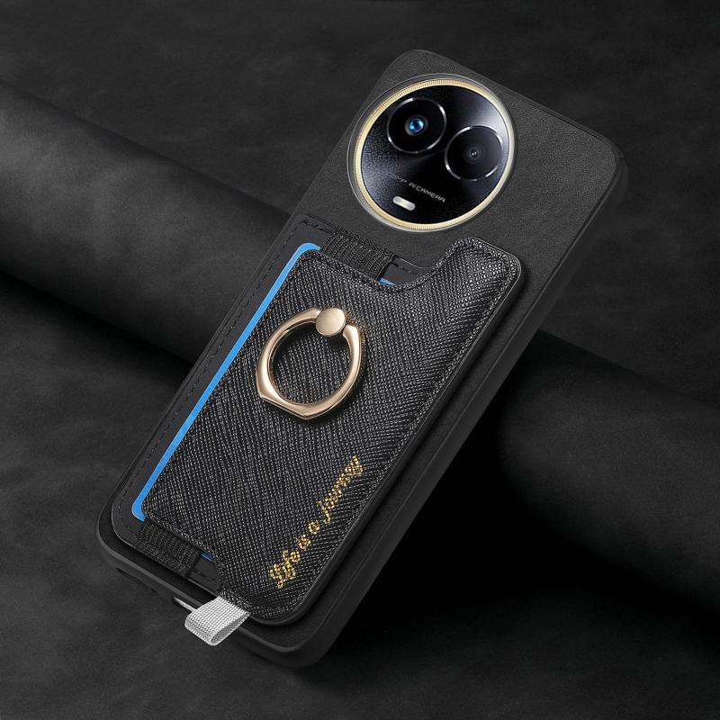 For Realme 11 4G Global Retro Magsafe Cross Leather Ring Holder Card Bag Phone Case(Black)