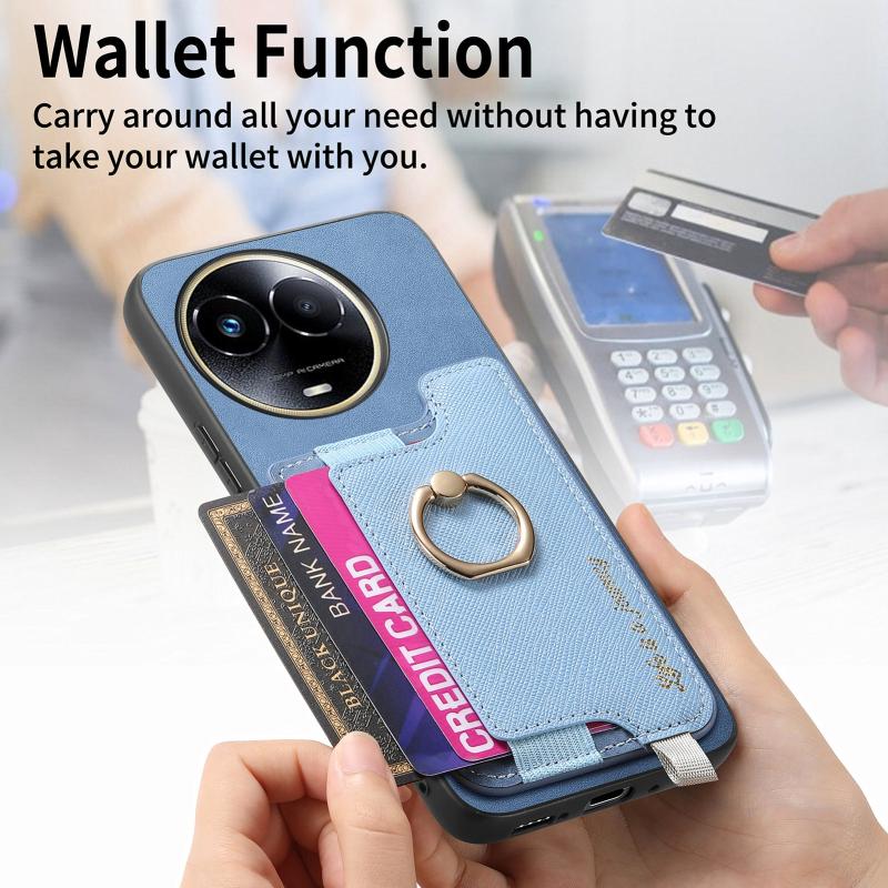 For Realme 11 4G Global Retro Magsafe Cross Leather Ring Holder Card Bag Phone Case(Blue)