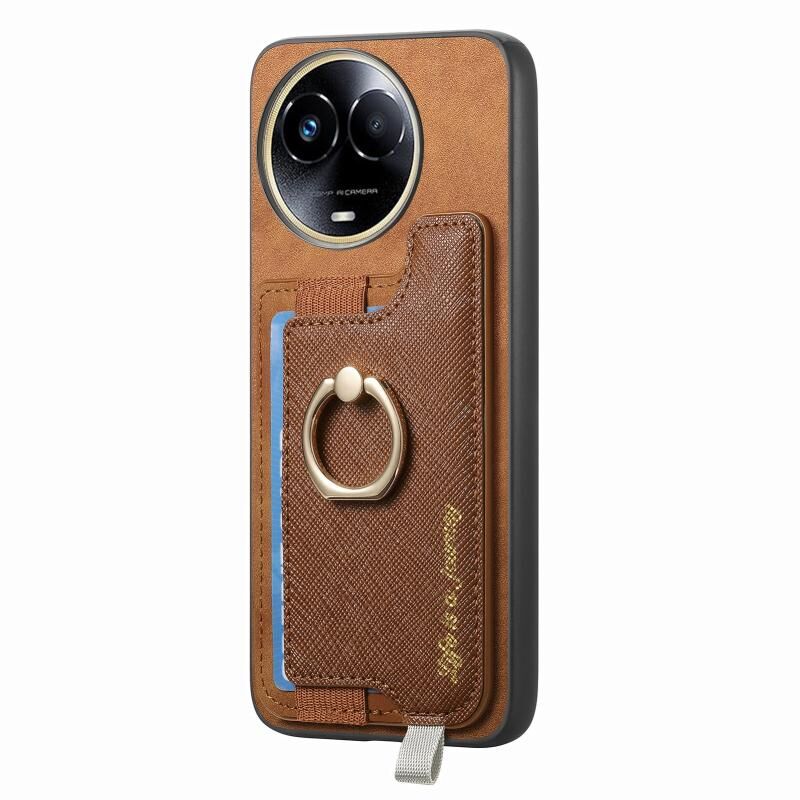 Θήκη τηλεφώνου για Realme 11 4G Global Retro Magsafe Cross Δερμάτινος Κρατητής Δακτυλιδιού Θήκη Κάρτας (Μπλε)