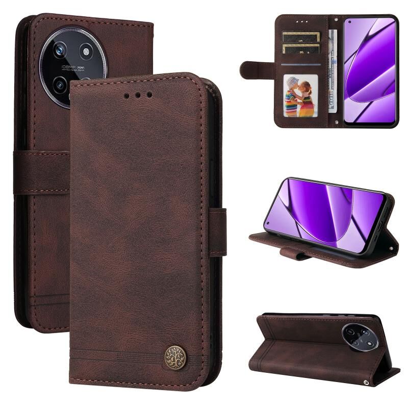For Realme 11 4G Global Skin Feel Life Tree Metal Button Leather Phone Case(Brown)
