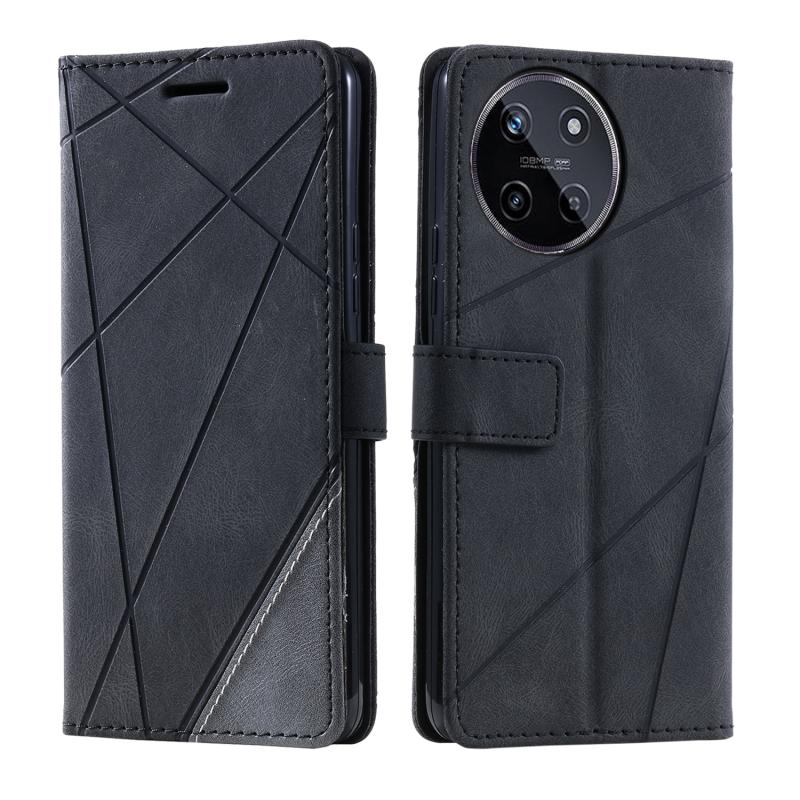 For Realme 11 4G Global Skin Feel Splicing Leather Phone Case(Black)