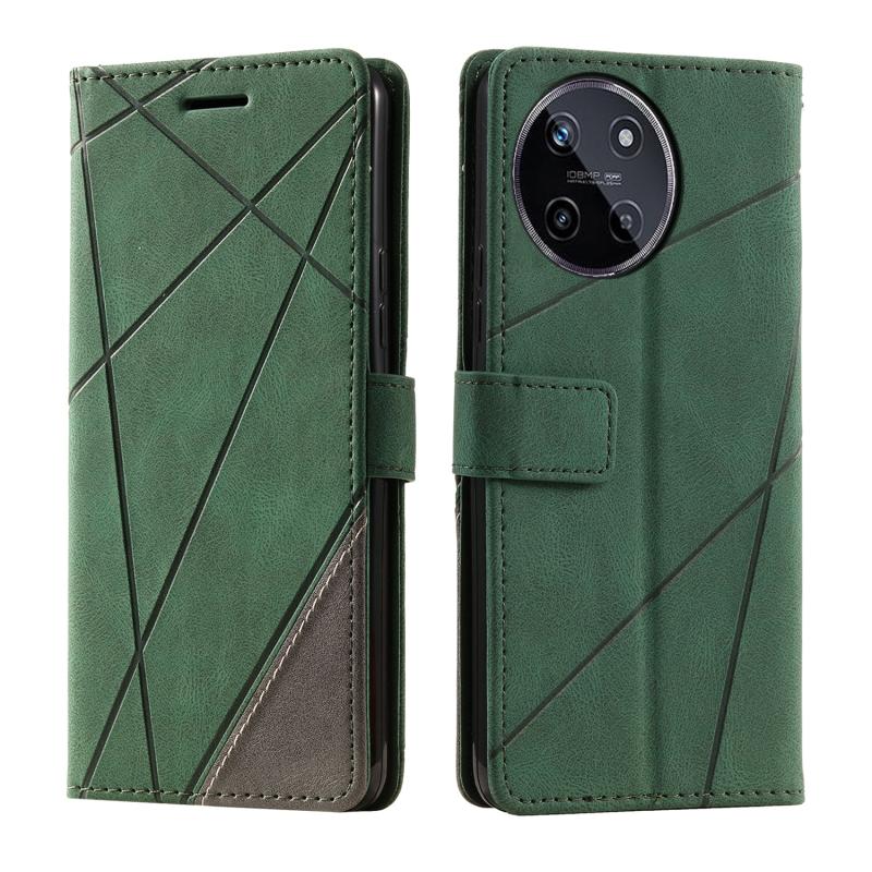 For Realme 11 4G Global Skin Feel Splicing Leather Phone Case(Green)