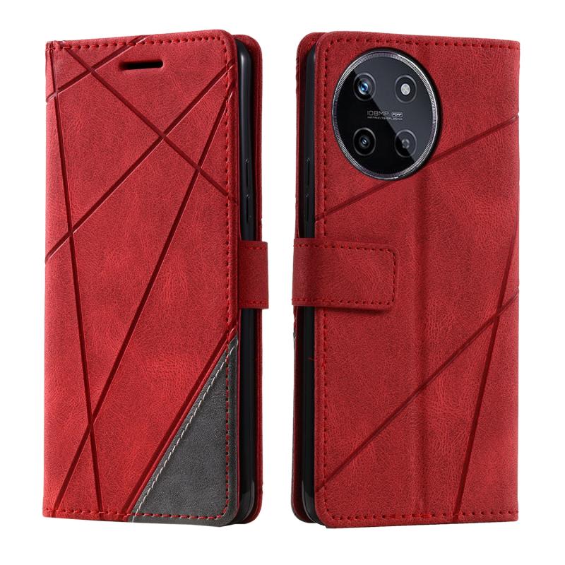 For Realme 11 4G Global Skin Feel Splicing Leather Phone Case(Red)