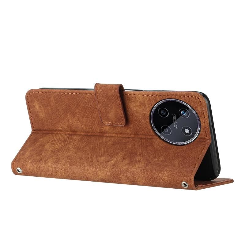 For Realme 11 4G Global Skin Feel Stripe Pattern Leather Phone Case with Lanyard(Brown)