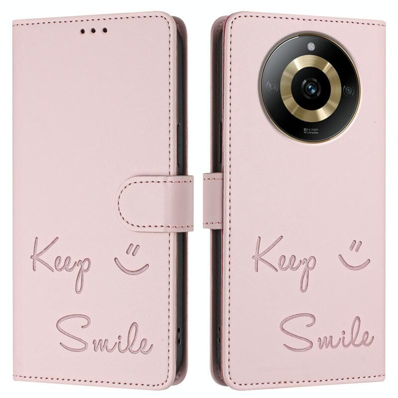 Για Realme 11 4G Global Smile Ανάγλυφο RFID δερμάτινη θήκη τηλεφώνου (ροζ)