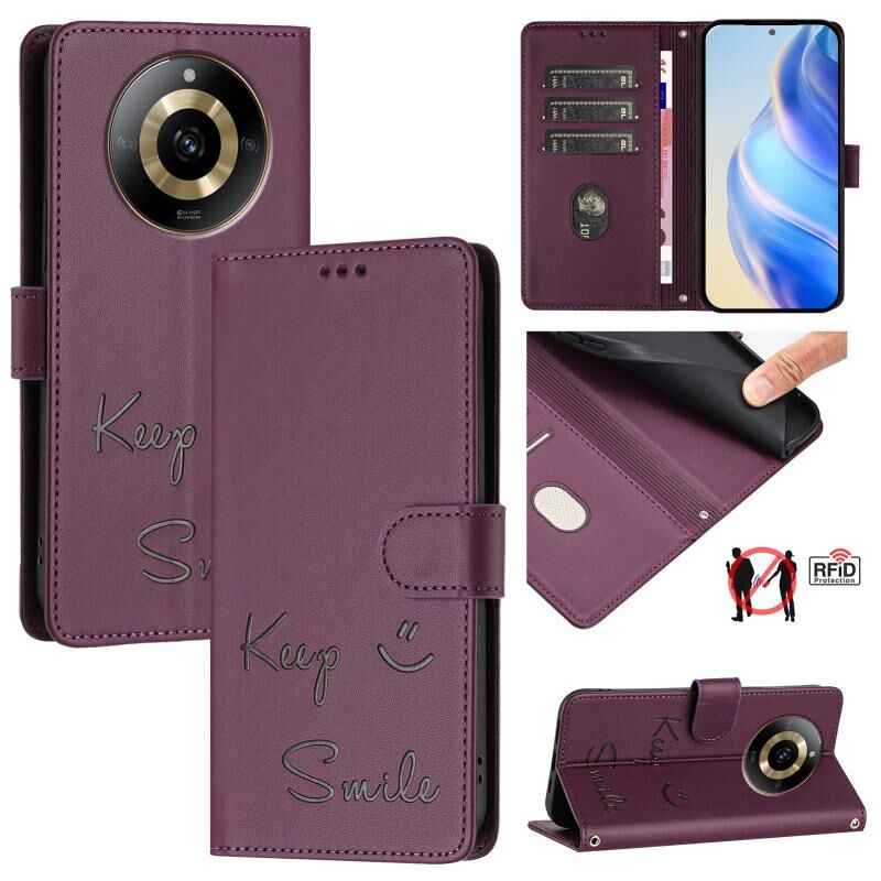 Για Realme 11 4G Global Smile ανάγλυφο RFID δερμάτινη θήκη τηλεφώνου (Violet)