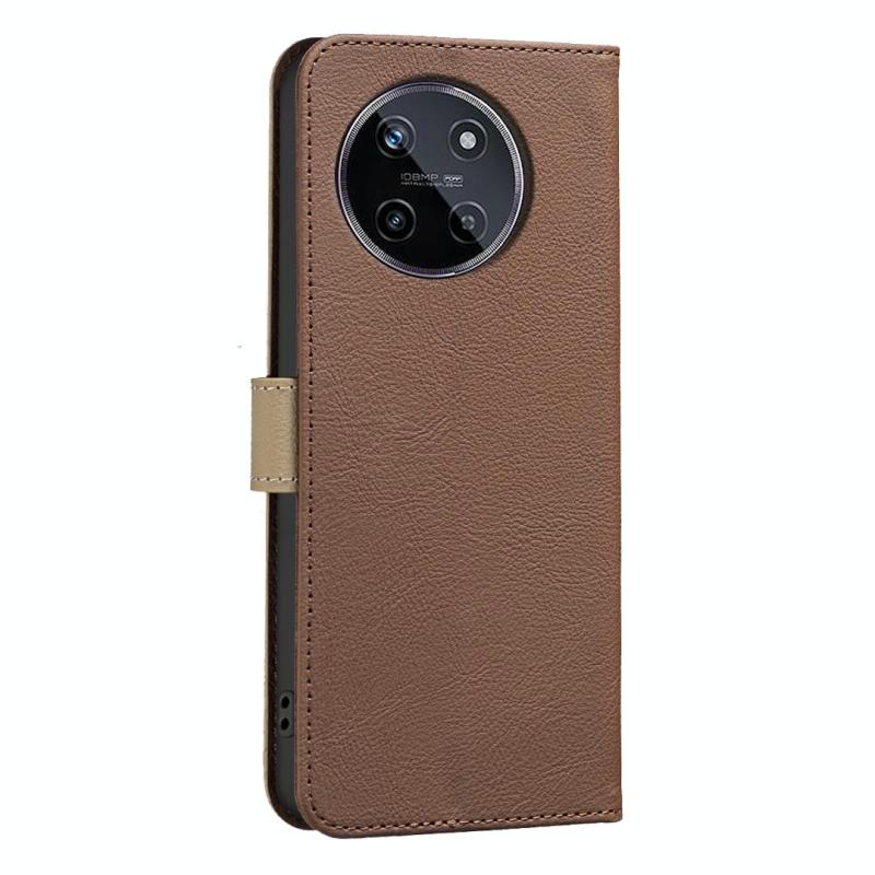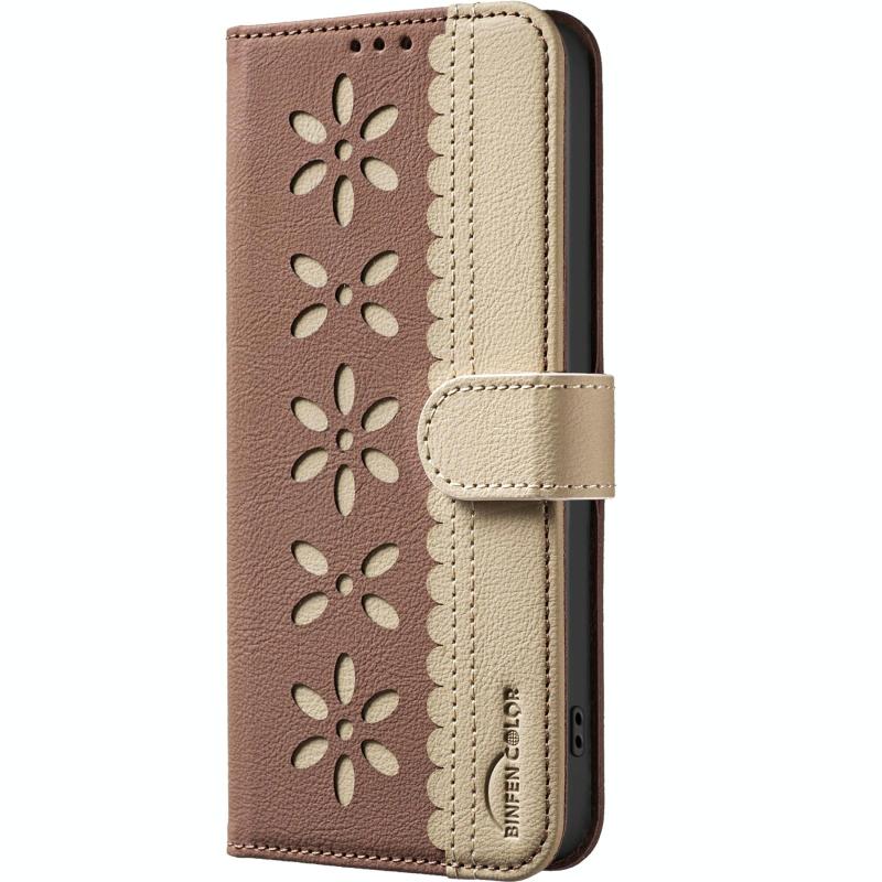 For Realme 11 4G Global Splicing Color Hollow Flower Pattern RFID Leather Phone Case(Brown)