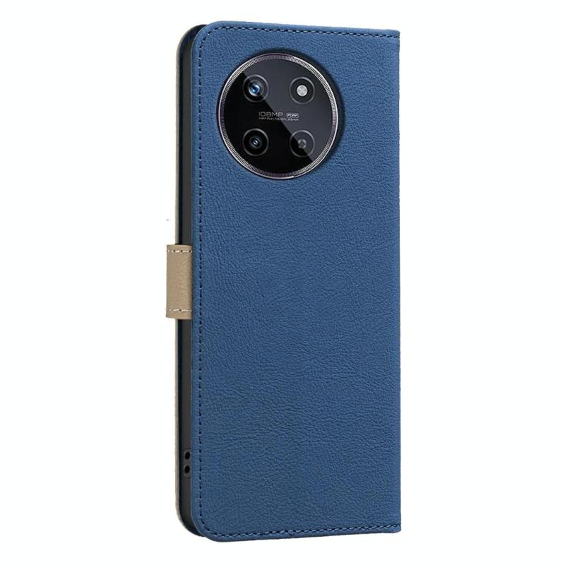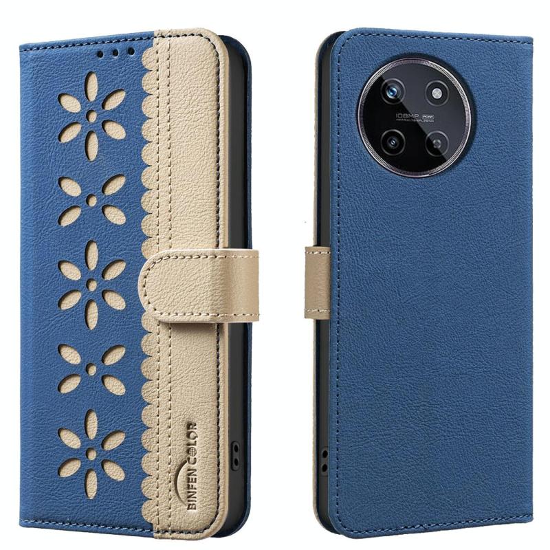 For Realme 11 4G Global Splicing Color Hollow Flower Pattern RFID Leather Phone Case(Dark Blue)