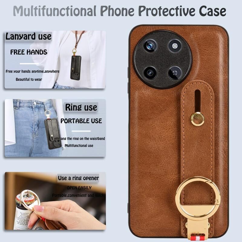 Για Realme 11 4G Global Wristband δέρμα πίσω υπόθεση τηλεφώνου (καφέ)
