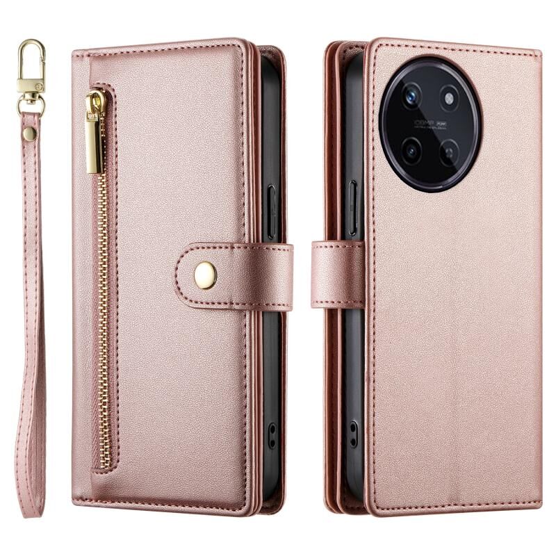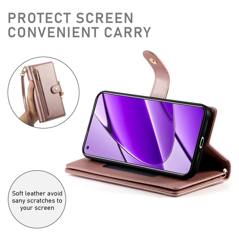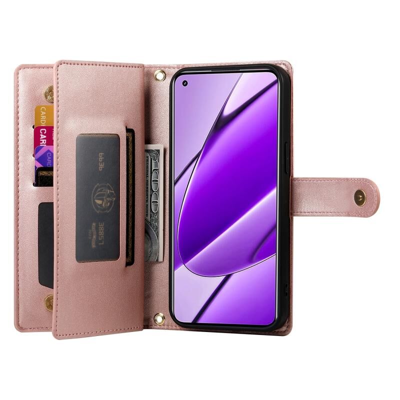 For Realme 11 4G Nine Card-slot Zipper Wallet Bag Leather Phone Case(Pink)