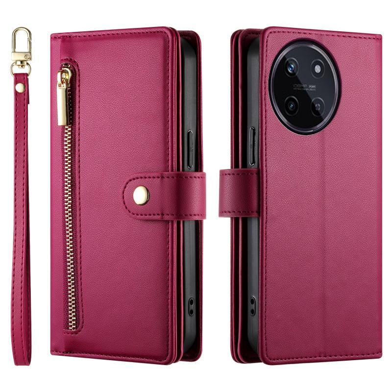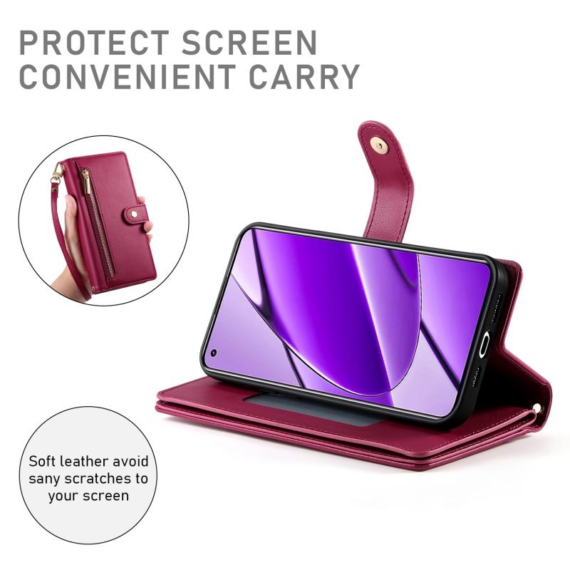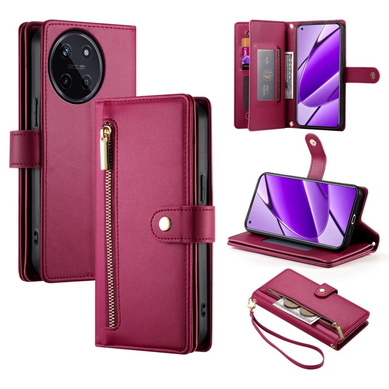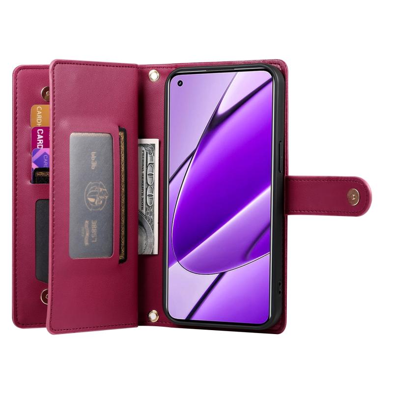 For Realme 11 4G Nine Card-slot Zipper Wallet Bag Leather Phone Case(Red)
