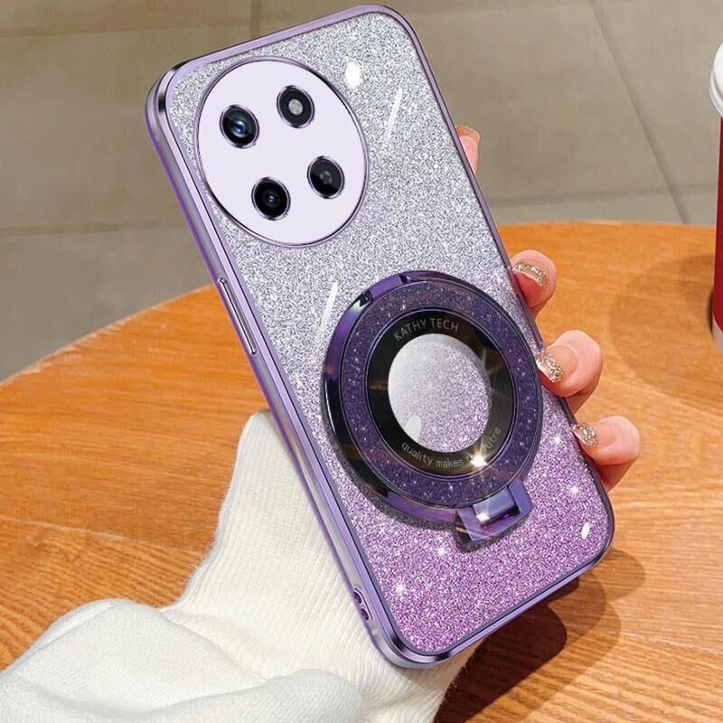 For Realme 11 4G Plated Gradient Glitter Round Holder TPU Phone Case(Purple)