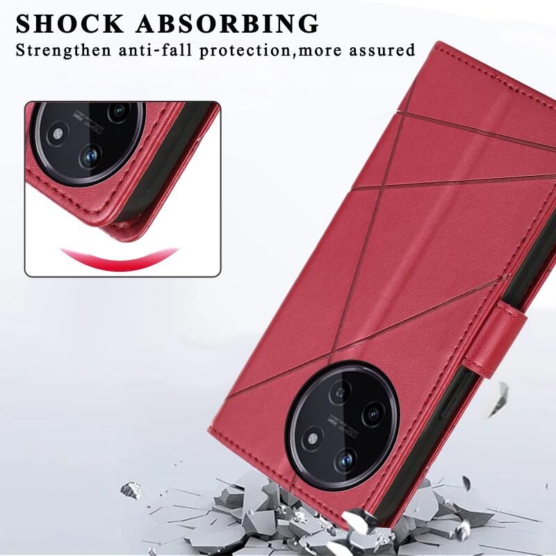 For Realme 11 4G PU Genuine Leather Texture Embossed Line Phone Case(Red)