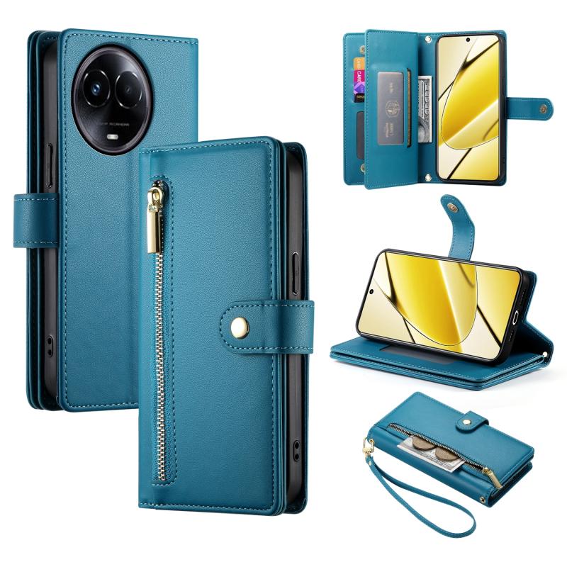 For Realme 11 5G / 11x Nine Card-slot Zipper Wallet Bag Leather Phone Case(Blue)