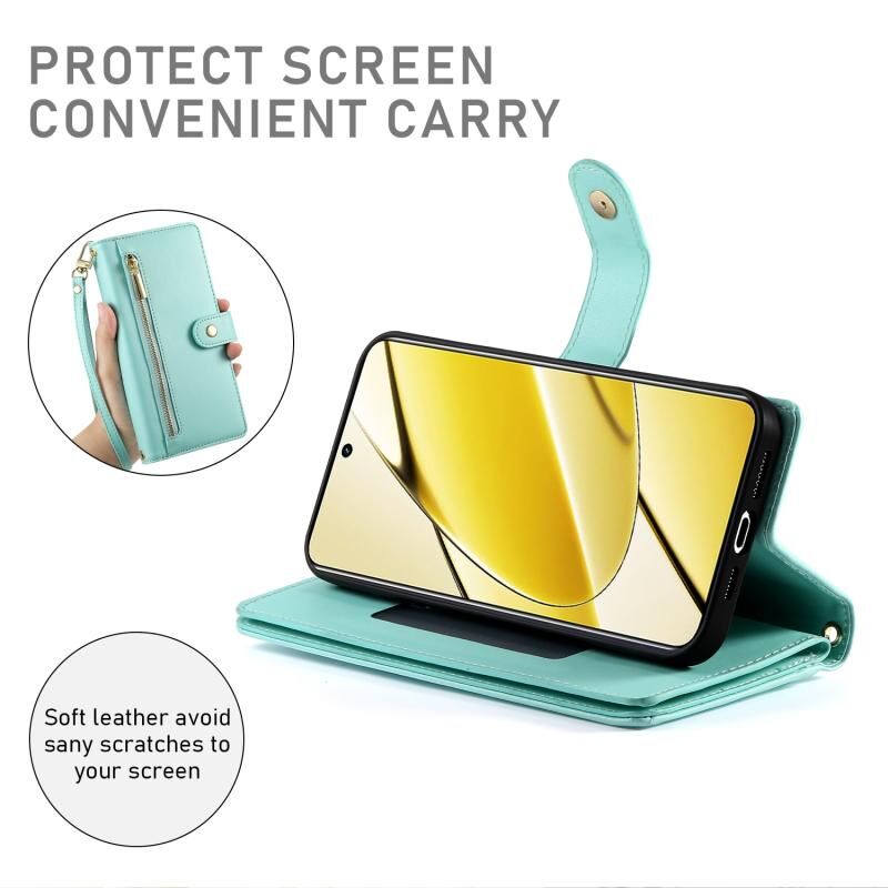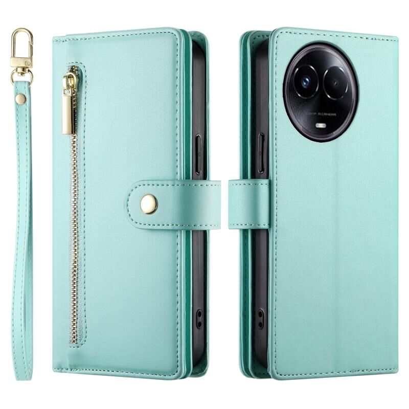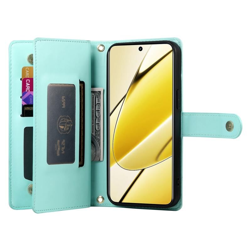 For Realme 11 5G / 11x Nine Card-slot Zipper Wallet Bag Leather Phone Case(Mint Green)