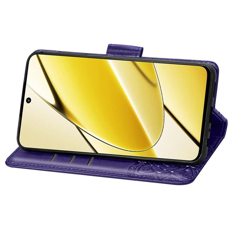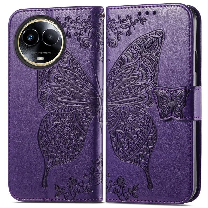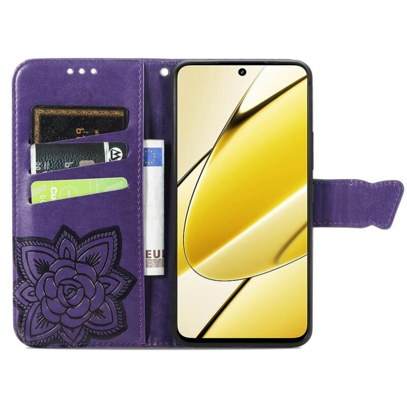 Θήκη τηλεφώνου από δέρμα με ανάγλυφο σχέδιο πεταλούδας και λουλουδιών για Realme 11 5G (Χρυσό Ροζ)