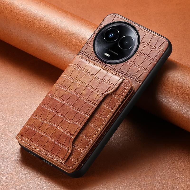 Για Realme 11 5G Θήκη Τηλεφώνου με Υφή Κροκόδειλου, Σχεδιασμός Κάρτας, Πλήρης Κάλυψη (Καφέ) (Denior)