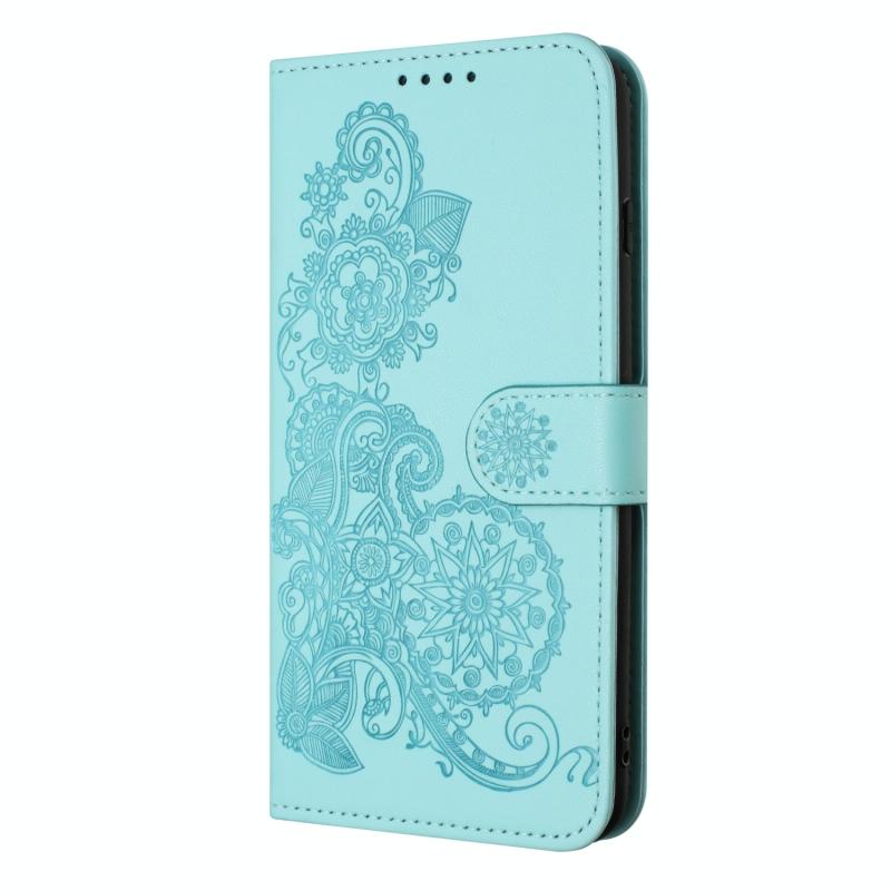 For Realme 11 5G Datura Flower Embossed Flip Leather Phone Case(Light blue)